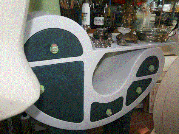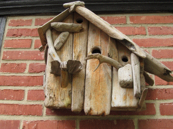 Jürgen Smutek fügt Antiquitäten mit neuen Objekten zusammen. Manchmal werden nur Teile ersetzt, manchmal entsteht aus Treibgut ein ganz neues Haus. Das vorgefundene Material beflügelt seine Kreativität.